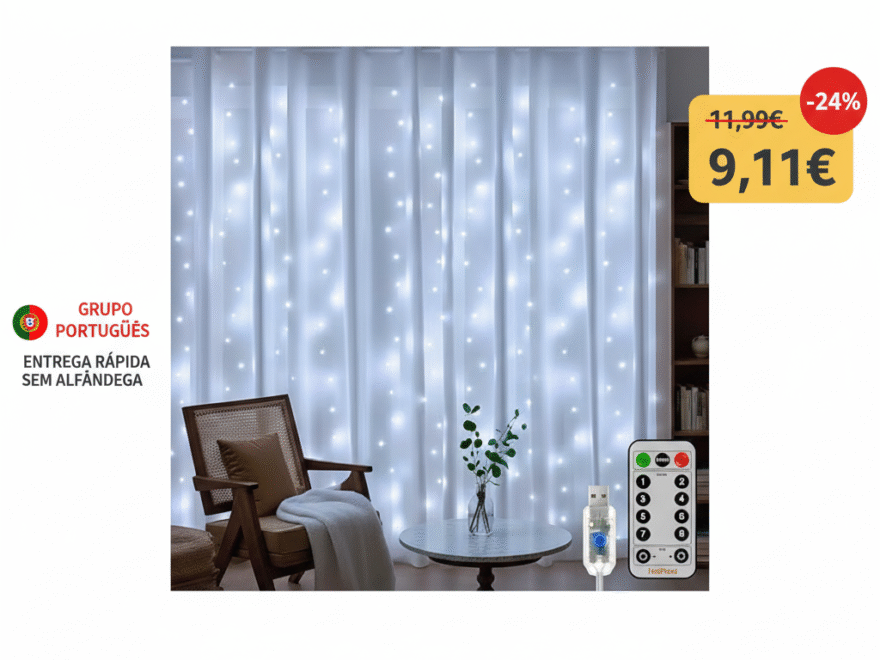 Cortina de Luzes LED 3x2m: Iluminação Mágica com Controle e Timer